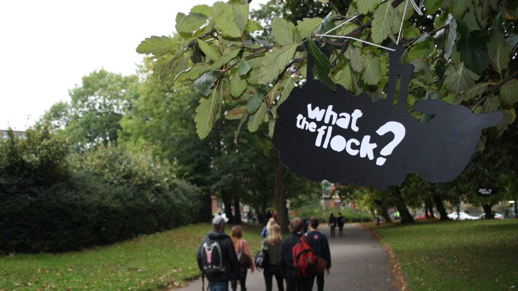 Alongside digital engagement, we also used ambient media to make the campaign visible in unexpected spaces – helping What the Flock? gather a strong following and become a recognisable student movement.